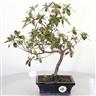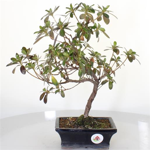 Rhododendron indicum (Ericacee) Arbusto sempreverde, originario del Giappone, con piccole foglie di un bel verde scuro. La peculiarità di questa essenza è la spettacolare fioritura primaverile di color porpora, che ne fa una delle più belle piante da fiore in assoluto. L'Azalea, come tutte le Ericacee, ama essere annaffiata con acqua decalcificata; preferisce le posizioni ombreggiate (infatti il habitat ideale è il sottobosco di conifere) e si presta a tutti gli stili bonsai.