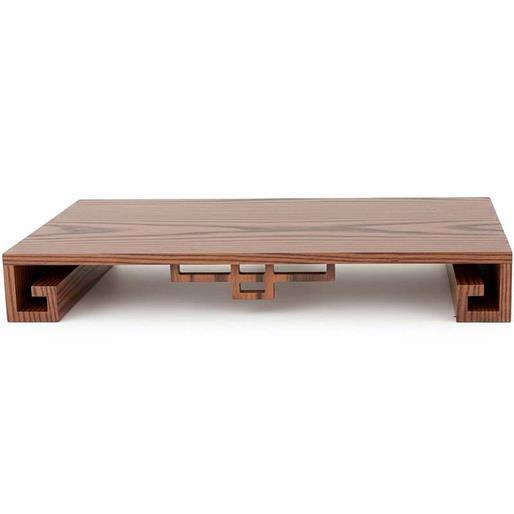 Tavolino realizzato per l'esposizione dei bonsai, in legno rifinito con vernice impregnante