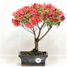 Rhododendron indicum (Ericacee) Arbusto sempreverde, originario del Giappone, con piccole foglie di un bel verde scuro. La peculiarità di questa essenza è la spettacolare fioritura primaverile, che ne fa una delle più belle piante da fiore in assoluto. L'Azalea, come tutte le Ericacee, ama essere annaffiata con acqua decalcificata; preferisce le posizioni ombreggiate (infatti il habitat ideale è il sottobosco di conifere) e si presta a tutti gli stili bonsai.