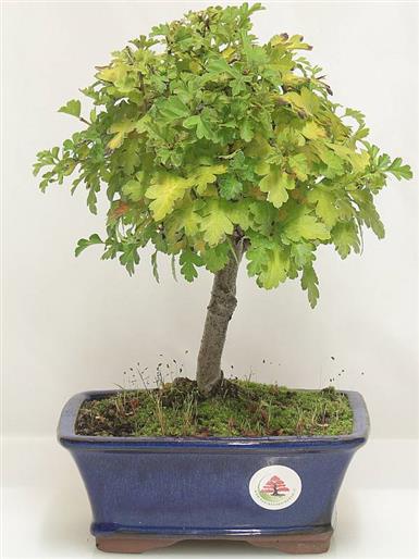 Crataegus monogyna (Rosacee). Alberello che in natura raggiunge i 10 mt. di altezza, particolarmente generoso nella produzione di fiori bianchi molto persistenti, ai quali segue lo sviluppo di bacche rosse. Si trova allo stato spontaneo in Europa, Asia, America ed Asia. Bonsai particolarmente resistente ai parassiti e alle avversità climatiche, ama posizioni soleggiate e non richiede particolari cure per la coltivazione.