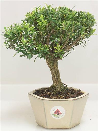 Buxus Hairlandii (Buxacee) Bonsai sempreverde, a crescita lentissima, particolarmente interessante per le foglie piccolissime e la vegetazione compatta, che si presta ad essere educata in qualunque stile. Non richiede particolari attenzioni per vivere in salute, sia al sole, sia all'ombra. Il suo legno è così pesante da avere un peso specifico maggiore dell'acqua.