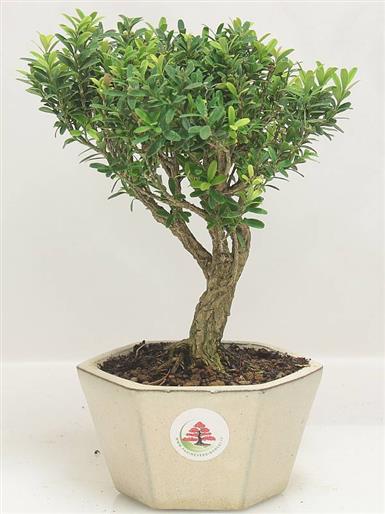 Buxus Hairlandii (Buxacee) Bonsai sempreverde, a crescita lentissima, particolarmente interessante per le foglie piccolissime e la vegetazione compatta, che si presta ad essere educata in qualunque stile. Non richiede particolari attenzioni per vivere in salute, sia al sole, sia all'ombra. Il suo legno è così pesante da avere un peso specifico maggiore dell'acqua.
