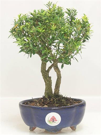 Buxus Hairlandii (Buxacee) Bonsai sempreverde, a crescita lentissima, particolarmente interessante per le foglie piccolissime e la vegetazione compatta, che si presta ad essere educata in qualunque stile. Non richiede particolari attenzioni per vivere in salute, sia al sole, sia all'ombra. Il suo legno è così pesante da avere un peso specifico maggiore dell'acqua.