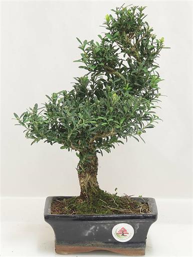 Buxus Hairlandii (Buxacee) Bonsai sempreverde, a crescita lentissima, particolarmente interessante per le foglie piccolissime e la vegetazione compatta, che si presta ad essere educata in qualunque stile. Non richiede particolari attenzioni per vivere in salute, sia al sole, sia all'ombra. Il suo legno è così pesante da avere un peso specifico maggiore dell'acqua.