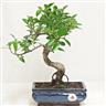 Albero di origine tropicale, dal tronco maculato, con foglie lucide e coriacee; particolarmente apprezzato per la possibilità di vivere anche all'interno,  produce facilmente radici aeree che partono dai rami e, a volte, si ricopre di piccoli frutti. Il Ficus è un bonsai facile da mantenere e poco esigente riguardo le annaffiature e le concimazioni.