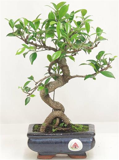 Albero di origine tropicale, dal tronco maculato, con foglie lucide e coriacee; particolarmente apprezzato per la possibilità di vivere anche all'interno,  produce facilmente radici aeree che partono dai rami e, a volte, si ricopre di piccoli frutti. Il Ficus è un bonsai facile da mantenere e poco esigente riguardo le annaffiature e le concimazioni.