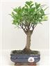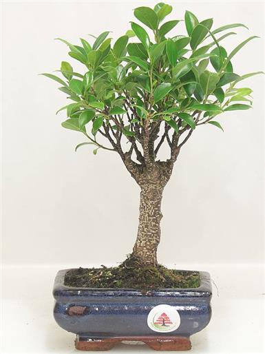 Ficus retusa (Moracee)Albero di origine tropicale, dal tronco maculato, con foglie lucide e coriacee; particolarmente apprezzato per la possibilità di vivere anche all'interno, produce facilmente radici aeree che partono dai rami e, a volte, si ricopre di piccoli frutti. Il Ficus è un bonsai facile da mantenere e poco esigente riguardo le annaffiature e le concimazioni.
