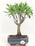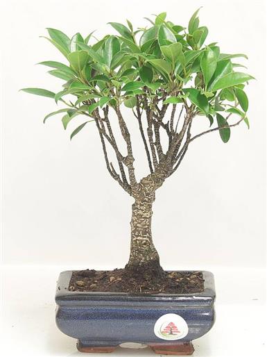 Albero di origine tropicale, dal tronco maculato, con foglie lucide e coriacee; particolarmente apprezzato per la possibilità di vivere anche all'interno,  produce facilmente radici aeree che partono dai rami e, a volte, si ricopre di piccoli frutti. Il Ficus è un bonsai facile da mantenere e poco esigente riguardo le annaffiature e le concimazioni.