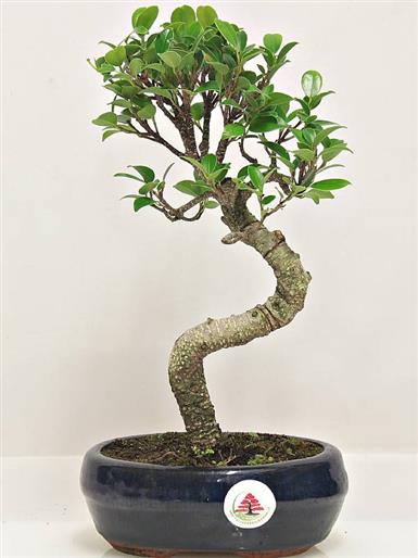 Albero di origine tropicale, dal tronco maculato, con foglie lucide e coriacee; particolarmente apprezzato per la possibilità di vivere anche all'interno,  produce facilmente radici aeree che partono dai rami e, a volte, si ricopre di piccoli frutti. Il Ficus è un bonsai facile da mantenere e poco esigente riguardo le annaffiature e le concimazioni.