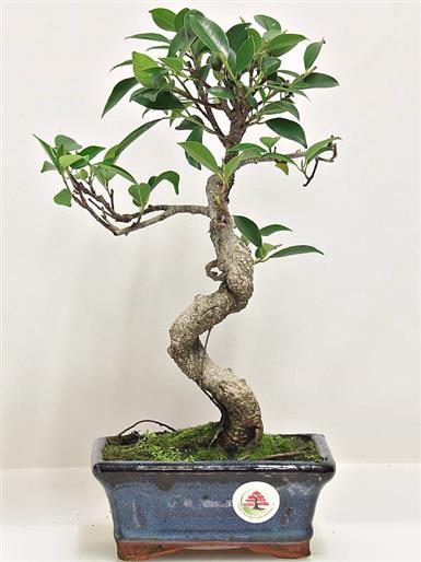 Ficus retusa (Moracee)Albero di origine tropicale, dal tronco maculato, con foglie lucide e coriacee; particolarmente apprezzato per la possibilità di vivere anche all'interno, produce facilmente radici aeree che partono dai rami e, a volte, si ricopre di piccoli frutti. Il Ficus è un bonsai facile da mantenere e poco esigente riguardo le annaffiature e le concimazioni.