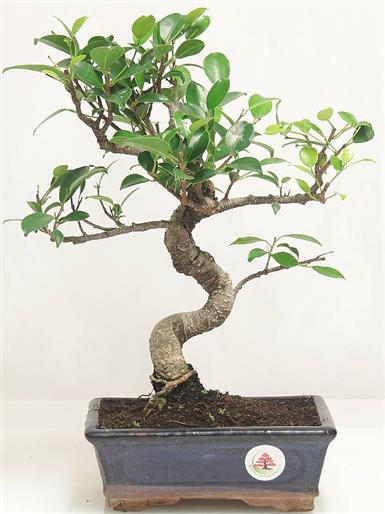 Ficus retusa (Moracee)Albero di origine tropicale, dal tronco maculato, con foglie lucide e coriacee; particolarmente apprezzato per la possibilità di vivere anche all'interno, produce facilmente radici aeree che partono dai rami e, a volte, si ricopre di piccoli frutti. Il Ficus è un bonsai facile da mantenere e poco esigente riguardo le annaffiature e le concimazioni.