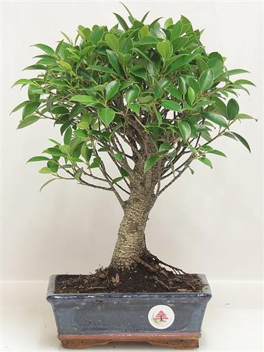 Ficus retusa (Moracee)Albero di origine tropicale, dal tronco maculato, con foglie lucide e coriacee; particolarmente apprezzato per la possibilità di vivere anche all'interno, produce facilmente radici aeree che partono dai rami e, a volte, si ricopre di piccoli frutti. Il Ficus è un bonsai facile da mantenere e poco esigente riguardo le annaffiature e le concimazioni.