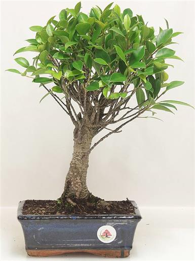 Albero di origine tropicale, dal tronco maculato, con foglie lucide e coriacee; particolarmente apprezzato per la possibilità di vivere anche all'interno,  produce facilmente radici aeree che partono dai rami e, a volte, si ricopre di piccoli frutti. Il Ficus è un bonsai facile da mantenere e poco esigente riguardo le annaffiature e le concimazioni.