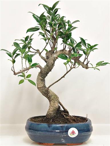 Albero di origine tropicale, dal tronco maculato, con foglie lucide e coriacee; particolarmente apprezzato per la possibilità di vivere anche all'interno, produce facilmente radici aeree che partono dai rami e, a volte, si ricopre di piccoli frutti. Il Ficus è un bonsai facile da mantenere e poco esigente riguardo le annaffiature e le concimazioni.