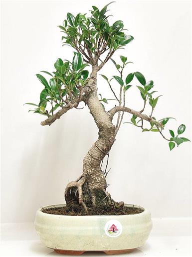 Ficus retusa (Moracee)Albero di origine tropicale, dal tronco maculato, con foglie lucide e coriacee; particolarmente apprezzato per la possibilità di vivere anche all'interno, produce facilmente radici aeree che partono dai rami e, a volte, si ricopre di piccoli frutti. Il Ficus è un bonsai facile da mantenere e poco esigente riguardo le annaffiature e le concimazioni.