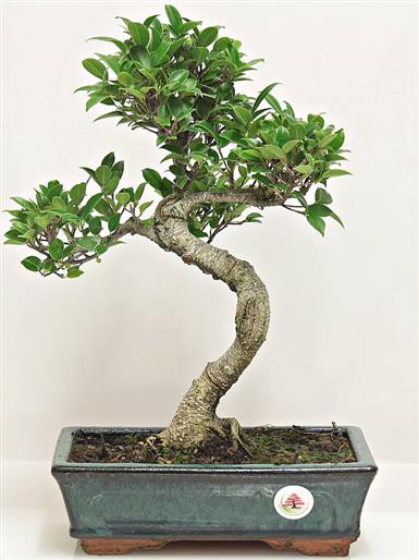 Ficus retusa (Moracee)Albero di origine tropicale, dal tronco maculato, con foglie lucide e coriacee; particolarmente apprezzato per la possibilità di vivere anche all'interno, produce facilmente radici aeree che partono dai rami e, a volte, si ricopre di piccoli frutti. Il Ficus è un bonsai facile da mantenere e poco esigente riguardo le annaffiature e le concimazioni.