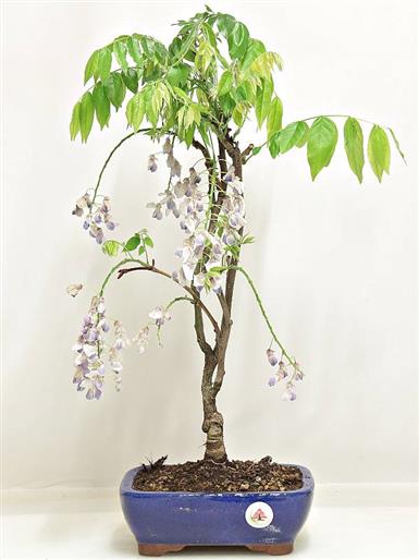 Wisteria chinensis (Leguminose) Pianta rampicante originaria di Cina e Giappone. In natura supera spesso i dieci metri di altezza. Foglie composte da 7 a 13 foglioline. Bonsai dalla fantastica fioritura che può essere viola, bianca o rossa. Anche se è una essenza che ama il sole, dopo la fioritura è conveniente tenerlo in posizione semiombreggiata; questo per proteggere le foglie che, al sole, si rovinano facilmente.