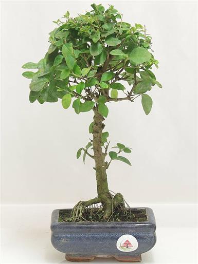 Ligustrum chinensis (Oleacee) Alberello originario della cina e del Giappone, in natura raggiunge i 3-4 mt. di altezza. Il Ligustro è un bonsai particolarmente resistente e disponibile a farsi educare in qualunque stile. Foglie piccole di un bel verde lucido, fiorellini bianchi in estate, ai quali seguono delle piccolissime bacche nere. Caducifoglia da esterno, in inverno conserva il fogliame se tenuta all'interno o nel caso di inverni miti.