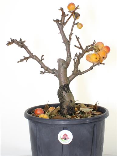 Tra i bonsai da frutto, il Melo è sicuramente la scelta migliore. Infatti, oltre agli splendidi fiori bianchi di primavera, successivamente produce dei graziosi frutti, prima verdi e successivamente rossi, che rimangono sui rami fino all'inverno; cosa assolutamente impensabile per gli altri bonsai.