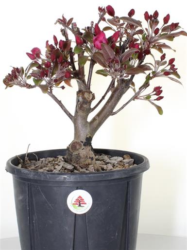 Tra i bonsai da frutto, il Melo è sicuramente la scelta migliore. Infatti, oltre agli splendidi fiori rossi di primavera, successivamente produce dei graziosi frutti, più piccoli rispetto alla varietà a fiori bianchi, prima verdi e successivamente rossi.