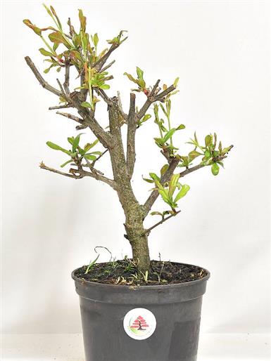 Punica granatum japonica "Nejikan" (Punicacee) Varietà giapponese, in natura cresce fino a 3-4 metri. Ben proporzionato, grazie al fogliame di piccolissime dimensioni, ha il tronco che nel tempo si contorce, conferendo al bonsai un aspetto affascinante. Inoltre, in primavera produce dei graziosi fiori rossi e successivamente, i gustosi frutti che rimangono attaccati alla pianta anche dopo la caduta delle foglie.