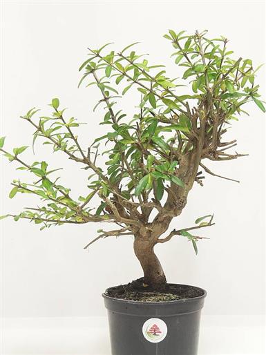 Punica granatum japonica "Nejikan" (Punicacee) Varietà giapponese, in natura cresce fino a 3-4 metri. Ben proporzionato, grazie al fogliame di piccolissime dimensioni, ha il tronco che nel tempo si contorce, conferendo al bonsai un aspetto affascinante. Inoltre, in primavera produce dei graziosi fiori rossi e successivamente, i gustosi frutti che rimangono attaccati alla pianta anche dopo la caduta delle foglie.