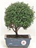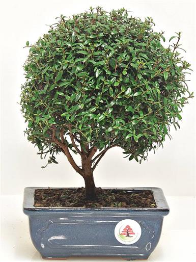 Myrtus communis (Myrtacee) Arbusto originario della fascia che va dal mediterraneo all'Asia occidentale, in natura cresce fino a 2-3 metri. Ben proporzionato, grazie al fogliame di piccolissime dimensioni, in primavera produce dei graziosi fiorellini bianchi e, successivamente, piccole bacche blù.
