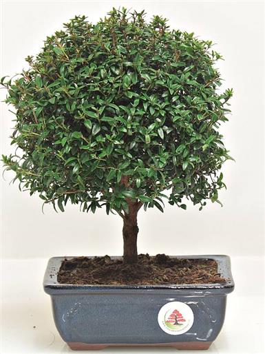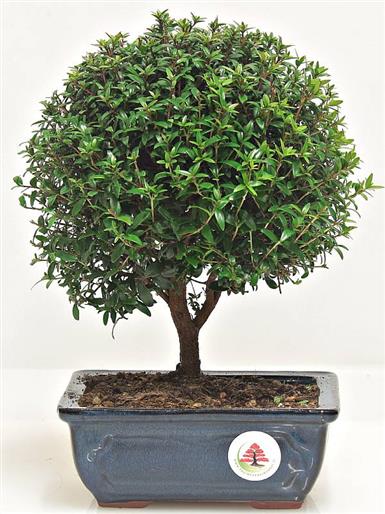 Myrtus communis (Myrtacee) Arbusto originario della fascia che va dal mediterraneo all'Asia occidentale, in natura cresce fino a 2-3 metri. Ben proporzionato, grazie al fogliame di piccolissime dimensioni, in primavera produce dei graziosi fiorellini bianchi e, successivamente, piccole bacche blù.