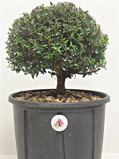 Myrtus communis (Mirtacee) Arbusto originario della fascia che va dal mediterraneo all'Asia occidentale, in natura cresce fino a 2-3 metri. Ben proporzionato, grazie al fogliame di piccolissime dimensioni, in primavera produce dei graziosi fiorellini bianchi e, successivamente, piccole bacche blù.
