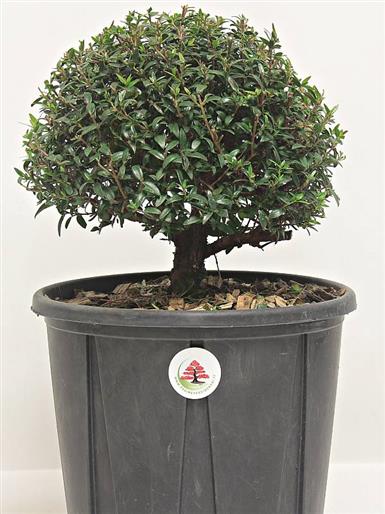 Myrtus tarentina (Mirtacee) Arbusto originario della fascia che va dal mediterraneo all'Asia occidentale, in natura cresce fino a 2-3 metri. Ben proporzionato, grazie al fogliame di piccolissime dimensioni, in primavera produce dei graziosi fiorellini bianchi e, successivamente, piccole bacche blù.