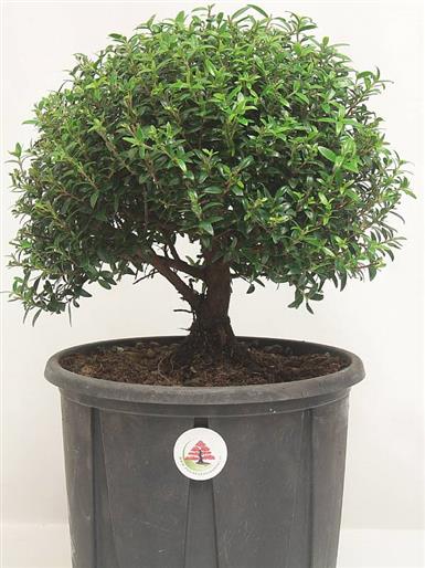 Myrtus tarentina (Mirtacee) Arbusto originario della fascia che va dal mediterraneo all'Asia occidentale, in natura cresce fino a 2-3 metri. Ben proporzionato, grazie al fogliame di piccolissime dimensioni, in primavera produce dei graziosi fiorellini bianchi e, successivamente, piccole bacche blù.