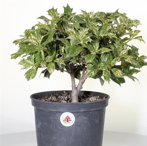 Osmanthus tricolor (Oleacee)Arbusto sempreverde originario del Giappone, con foglie variegate simili a quelle dell'Ilex. Pianta dalla crescita lenta e compatta, dal portamento forte ed elegante.