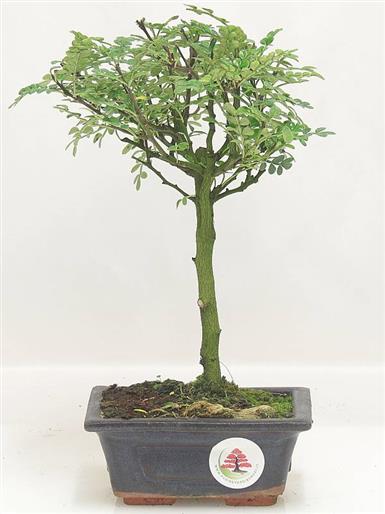 Zanthoxylum piperitum (Rutacee)Pianta originaria della Cina. Alberello leggero ed elegante con foglie molto piccole. La caratteristica che rende particolarmente interessante questo bonsai è la produzione di fiorellini giallo-ocra e l'intenso profumo del fogliame.