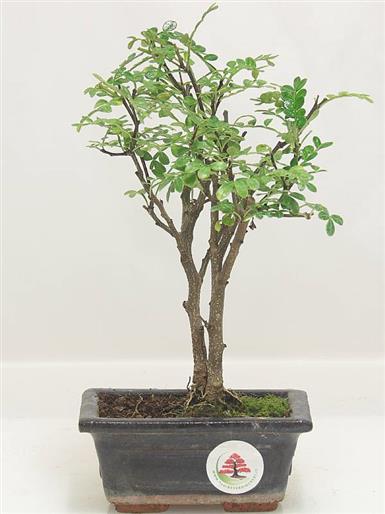 Zanthoxylum piperitum (Rutacee)Pianta originaria della Cina. Alberello leggero ed elegante con foglie molto piccole. La caratteristica che rende particolarmente interessante questo bonsai è la produzione di fiorellini giallo-ocra e l'intenso profumo del fogliame.