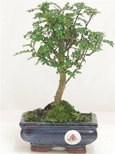 Zanthoxylum piperitum (Rutacee)Pianta originaria della Cina. Alberello leggero ed elegante con foglie molto piccole. La caratteristica che rende particolarmente interessante questo bonsai è la produzione di fiorellini giallo-ocra e l'intenso profumo del fogliame.