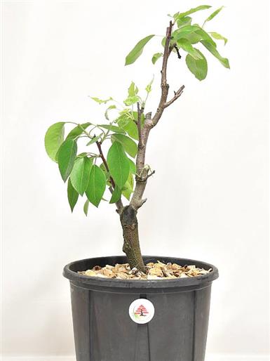 Pyrus communis (Rosacee) Bonsai di origine asiatica, che in natura raggiunge i 10 mt. d'altezza. Pianta in grado di originare, anche in soggetti molto giovani, un'abbondante produzione di fiori bianchi profumatissimi e frutti lunghi 3-4 cm. Bonsai rustico e di facile coltivazione, non richiede grandi attenzioni.