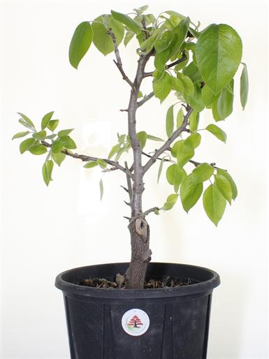 Pyrus communis (Rosacee)Bonsai di origine asiatica, che in natura raggiunge i 10 mt. d'altezza. Pianta in grado di originare, anche in soggetti molto giovani, un'abbondante produzione di fiori bianchi profumatissimi e frutti lunghi 3-4 cm. Bonsai rustico e di facile coltivazione, non richiede grandi attenzioni.