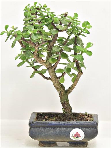 Portulacaria afra (Portulacacee)Pianta grassa dal portamento ad albero. Bonsai di pochissime pretese e di grande generosità: in pochi anni assume un aspetto da albero centenario, con tronchi enormi e grande ramificazione. Produce anche dei graziosi fiorellini rosa e bianchi.